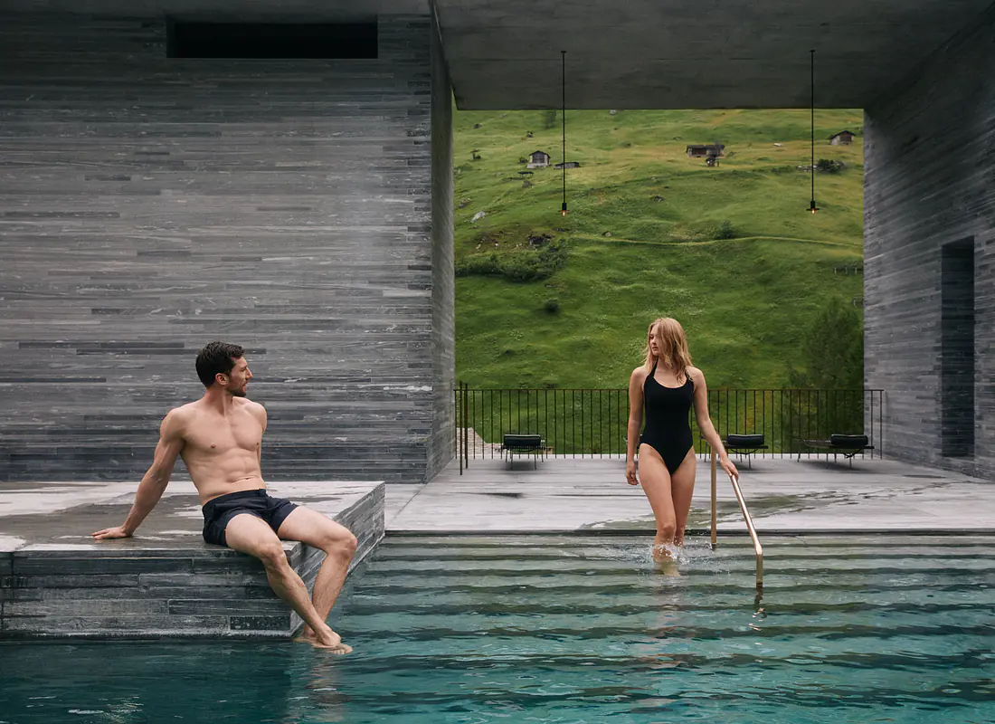 Vals… ça vous dit quelque chose ? Bien sûr : c’est le village d’origine de l’eau minérale Valser. Dans cette enclave walser du Val Lumnezia, tout tourne autour de l’eau – notamment au 7132 Therme, le célèbre complexe thermal signé par l’architecte Peter Zumthor. En hiver, Vals est aussi un paradis pour les amateurs de glisse : son domaine skiable du Dachberg culmine à près de 3 000 mètres. Il s’agit de l’un des plus hauts domaines de ski des Grisons, garantissant un excellent enneigement. Par beau temps, la vue s’étend des Alpes orientales et du massif de la Bernina jusqu’aux imposants 4 000 mètres valaisans.
